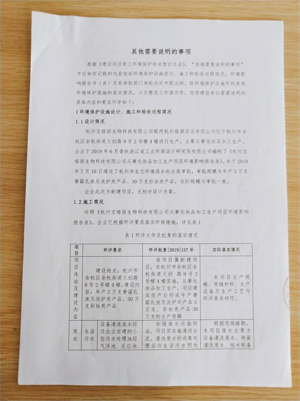 杭州宝格丽生物环评其他事项说明